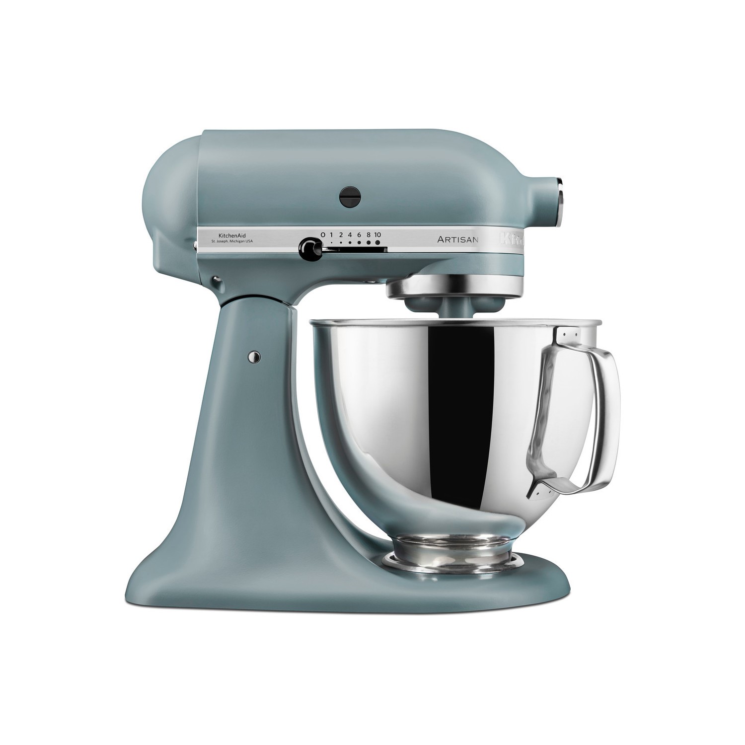The 5 speed hand mixer. A beautifully efficient piece of kitchen design KitchenAids Matte Fog Blue 175 Artisan Stand Mixer has a smooth tactile surface thats the colour of a Lake District sky just before sunset.